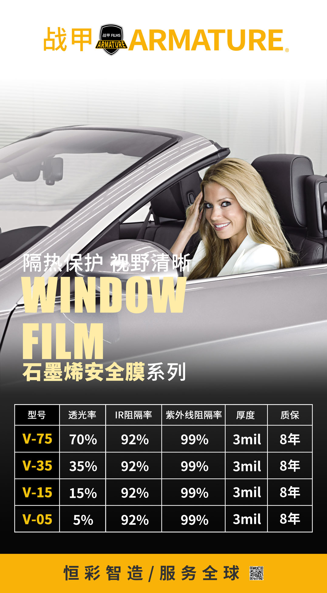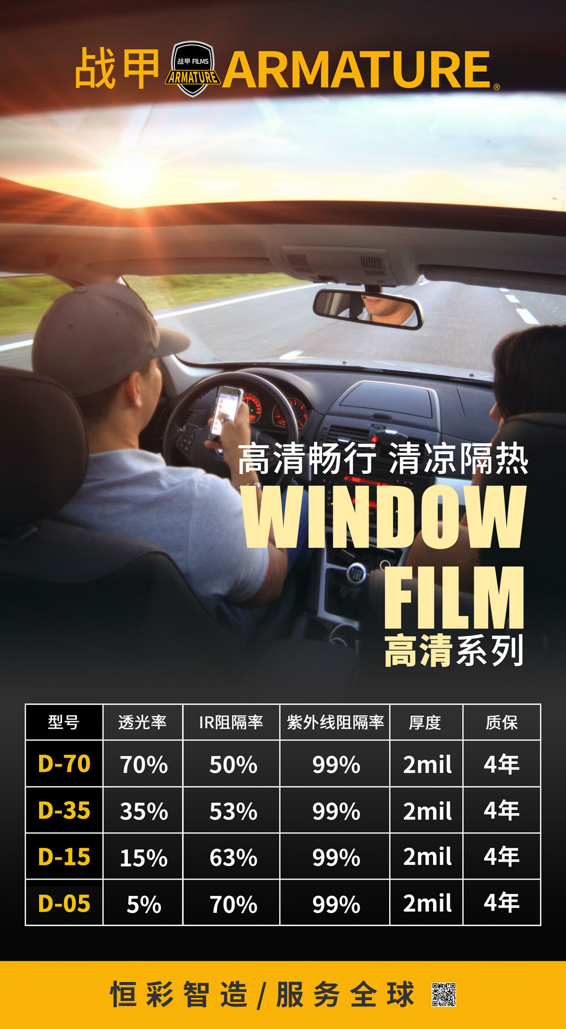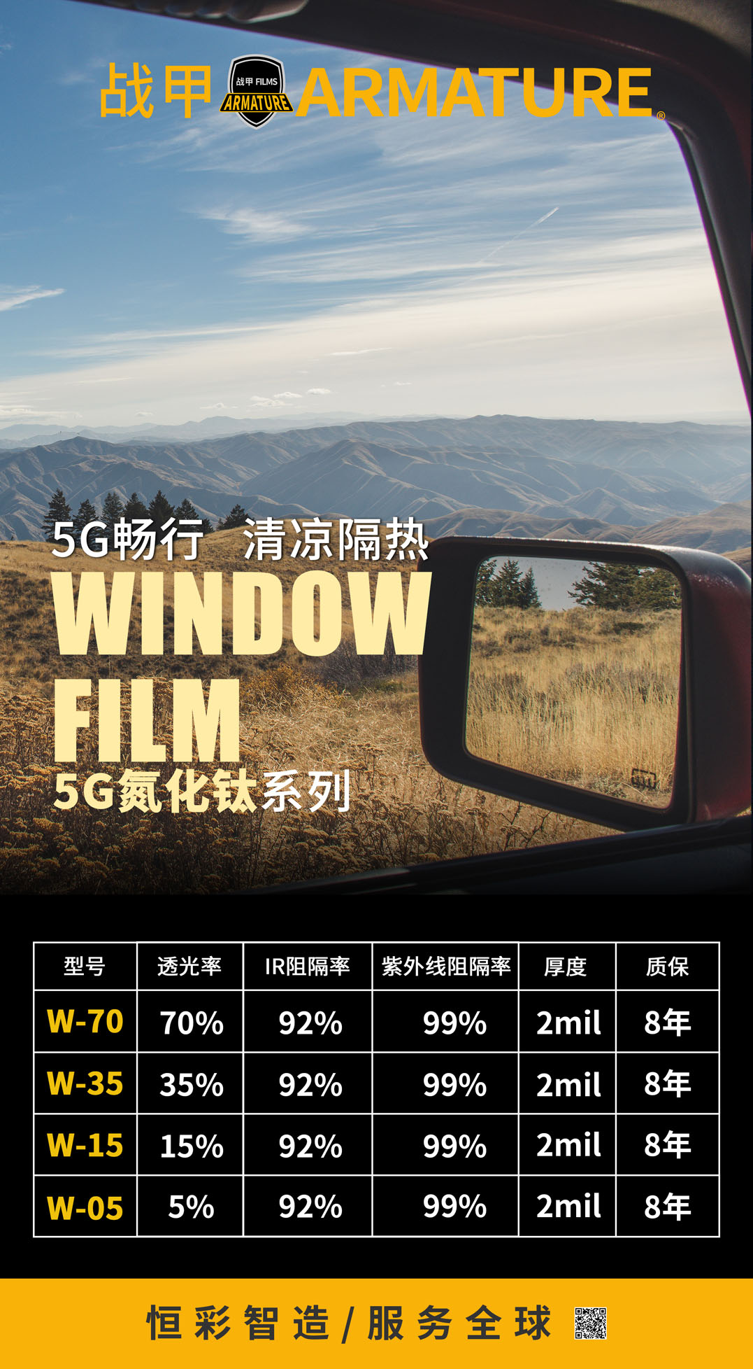 战甲采用了现代技术磁控溅射和纳米光学工艺,替代了传统窗膜。我们利用专有技术、工艺、涂料,生产出高质量高性能的窗膜,达到较高的光学精密水平。这使本品汽车膜具有高清晰度,无失真,并且能有效降低能源成本,提高隐私,保证安全,减少热量和眩光,以及减少红外线穿透。